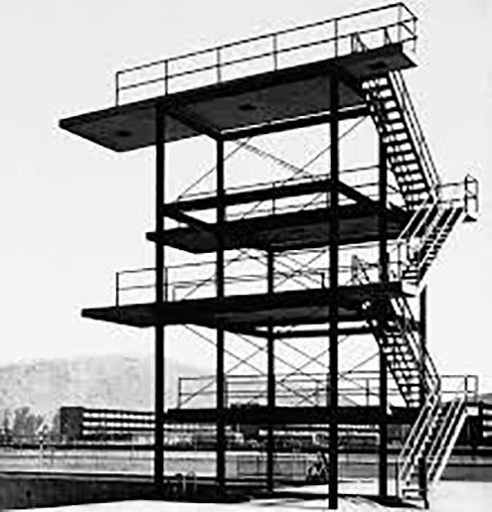 En el poniente, Area deportiva, EstadioEdificio de laboratorios ligeros, Cinco cuerpos para laboratorios pesados