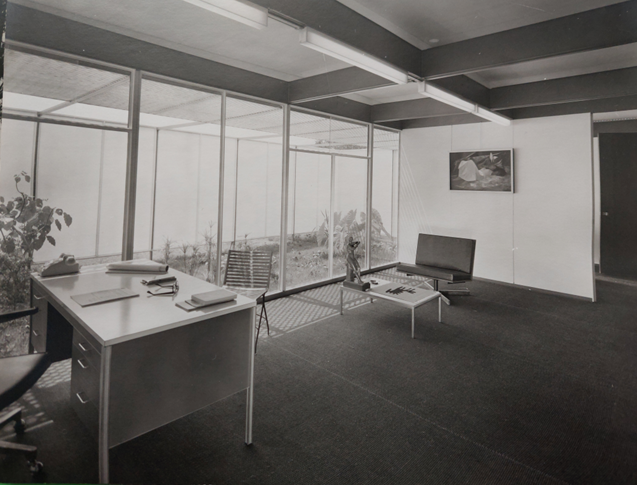 En esta edificación la primera losa tiene trabes sustentantes normales y la superior, trabes invertidas, para obtener un plafond sin obstáculos. En esta obra la mayoría de los muebles fuero diseñados y fabricados por ellos.